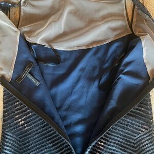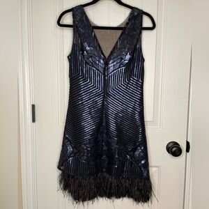 BCBGMaxAzria Caterina Black Blue Sequin Feather Dress XXS Loose Fit