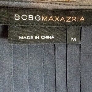 Luxurious button-down silk blouse from BCBGMaxAzria with pleated front and back in a rich deep charcoal grey.