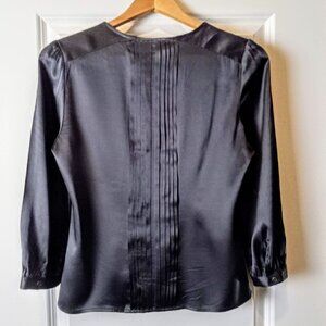 BCBGMaxAzria Charcoal Grey Pleated Silk LS Blouse