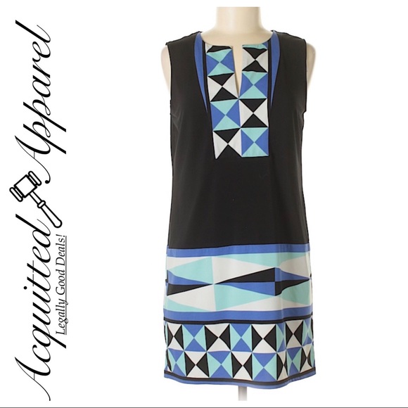 This classic colorblock and print detail dress by BCBG Max Azria is in excellent pre loved condition and the kind of fabric that doesn’t wrinkle. Size small. 40” Chest 32” Length 94% Polyhester 6% Spandex
