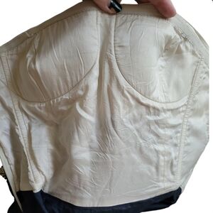 BCBGMaxAzria Colorblock Blue Black Cream Strapless Puff Mini Dress Size 6