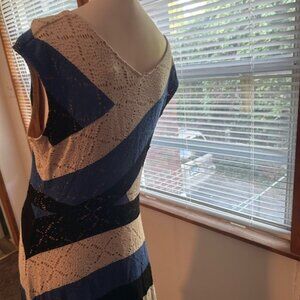 BCBGMaxAzria Color-block Blue/Black/White V-neck front & back knit dress, size L