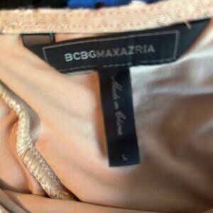 BCBGMaxAzria Saphr Color block Blue/Black/White V-neck front & back knit dress, size L (95% Viscose, 5% Spandex)