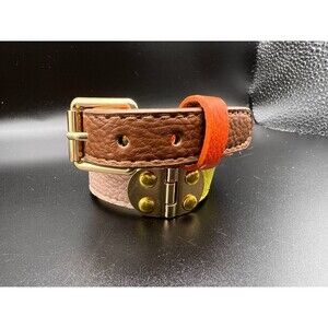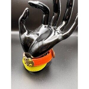 BCBGMaxAzria leather colorblock wrap bracelet. Orange, yellow, and tan.