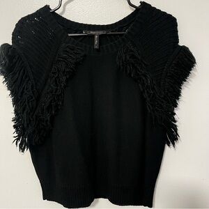BCBGMaxAzria Contemporary Boho Black Knit Fringe Cap Sleeve Sweater Size L