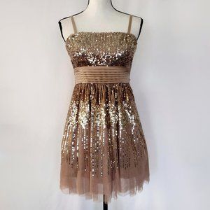 BCBGMaxAzria Convertible Strap Silk and Tulle Sequined Party Dress