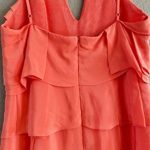 BCBGMaxAzria coral pleated dress. Fun for any formal function. Worn once. Dry cleaning salon ripped the size tag off, but I believe it is a size 0-2.