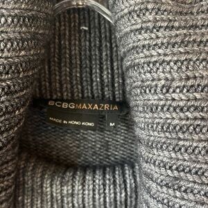 BCBGMaxAzria wool blend cowl neck charcoal grey cap sleeve sweater. This is so warm and cozy with the oversized cowl neck and 30% wool blend.