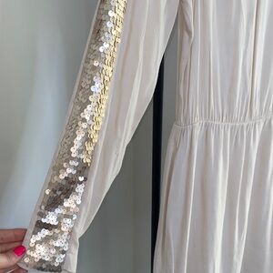BCBGMaxAzria Cream Dress with Gold Sequin Shoulders