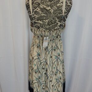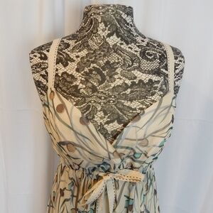 BCBGMaxAzria Cream and Teal Chiffon Dress Sz 12