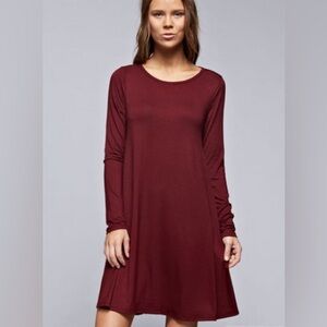 Chic long sleeve dress in deep red. Simple and stylish design. Perfect for versatile wear. No snags, stains or tear. Very lightweight, flowy and airy!