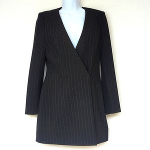 STYLE DETAILS *Shawl lapel. *Crossover front. *Long sleeves. *Hidden button closure. *Deep V-neck. *Black & white pinstripe print FABRIC ~Poly / viscose / spandex NWT Non-Smoking Household. Dog-Friendly Household. RELATED: Hailey Bieber • Kendall Jenner • chic • stylish • Blazer • Blazer Dress • oversized blazer • edgy • Black dress • little Black dress • lbd • trendy • trending • sparkly • unique gift • Instagram • minimalist • classic • classy • chic • exquisite • glam • glamorous • gemstones • gems • beautiful • intricate • high-end • quality • designer • shower • wedding • bridal • bridesmaid • formal • black tie • gala • church • work • school • holiday • present • New Year’s • President’s Day • Valentine’s Day • Galentine's • St. Patrick’s Day • Easter • 4th of July • Memorial Day • Mother’s Day • Father’s Day • Labor Day • Halloween • Thanksgiving • Birthday • Christmas • Christmas Eve • party • animal • family pictures • 70’s • hippy • 80’s • Retro • 90’s • Y2K • contemporary • wedding guest • date night • anniversary • resort • vacation • getaway • festival • TikTok • vintage • engagement • bachelorette • statement • novelty • luxury • luxe • mom •dad • aunt • sister • cousin • grandma • niece • teacher • friend • best friend • bff • rhinestone • crystal • bling • love • floral