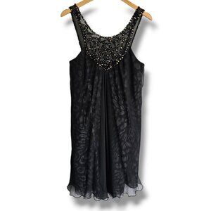 BCBGMaxAzria Dress Black Size 10 Embellished Gauzy Layers Lace Beaded Fairy Boho