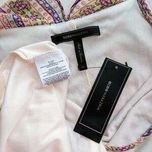 BCBGMaxAzria Dress Halter Neck Sleeveless Sheath Ruffled Navy Coral Pink M NWT