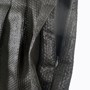 Step out in sophisticated style with this BCBGMaxAzria black metallic A-line sheath dress, perfect for any party or cocktail event. This dress features a chic ruffle V-neck and a shimmering metallic sheen that catches the light. The waist is elegantly embellished, adding a touch of glamour, and practical on-seam pockets are a convenient detail. Designed with short cap sleeves and a hidden side zip closure for a seamless fit, this fully lined dress ensures comfort and a flattering silhouette.
