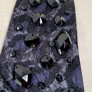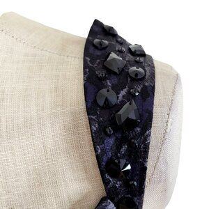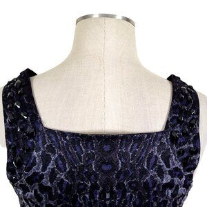BCBGMaxAzria Dress Sz 6 Embellished Shoulder Wool Silk Leopard Blue Black Silver