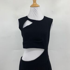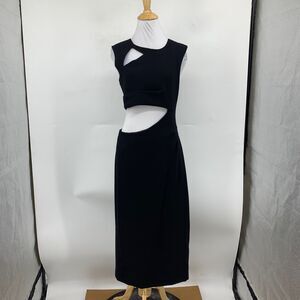 BCBGMaxAzria Dress Womens 8 Black Crepe Cut Out Open Back Back Zip Lined Maxi