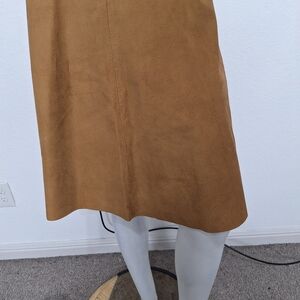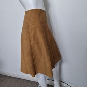 BCBGMaxAzria Tan Suede Leather Y2K Preppy A-Line Knee Length Skirt