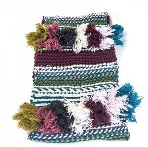 A cool spin on the traditional infinity scarf, BCBG Max Azria offers this intriguing design in a soft acrylic/wool blend knit. Warm earth tones.