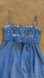 Details: Soft silk chiffon formal/semi formal cocktail dress in pastel blue with babydoll fit, square neckline, adjustable spaghetti straps, waist sash tie detail and shiny silver sequined and beaded embroidery across the bust.
