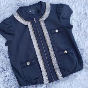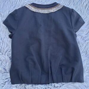 BCBGMaxAzria Embellished Cap Sleeves black top S