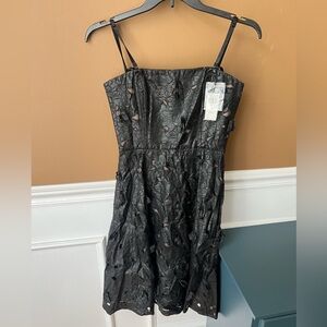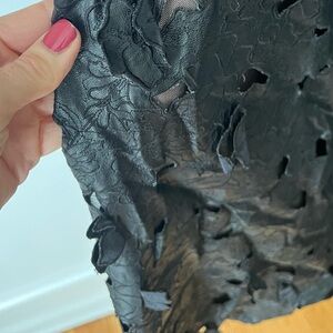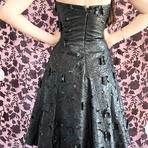 BCBGMaxAzria Emmeline Black Strapless Pleated Gown Size 8 Faux Leather Floral