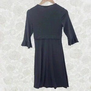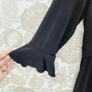 BCBGMaxAzria Fit & Flare Mini Dress S V neck Flare Cuffs Black Unlined
