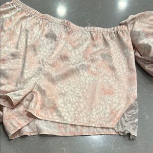 Chic pajama set with floral pattern. Soft fabric with lace trim. Perfect for relaxing evenings.