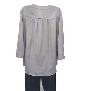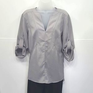 BCBGMaxAzria Flowy Blouse V-Neck Pullover Tunic Top Roll-Tab Quarter Long Sleeve
