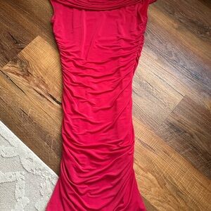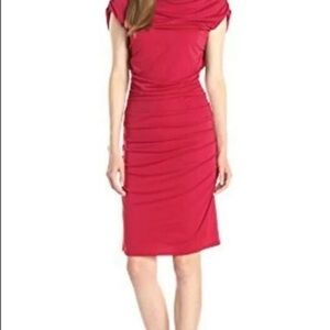 Chic fuchsia midi dress with ruched detailing. Perfect for stylish outings.