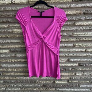 BCBGMaxAzria Fuchsia V Neck CrossWrap Sleeveless Top Size Medium