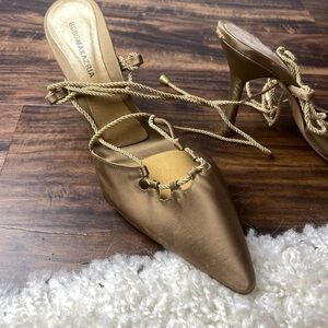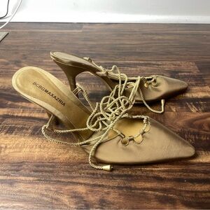 BCBGMaxAzria Gold Textile Lace Up from Foot to Ankle Heels