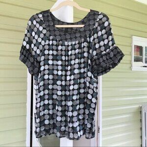 BCBGMaxAzria Gray & Blue Polka Dot Top Size M Silk blend