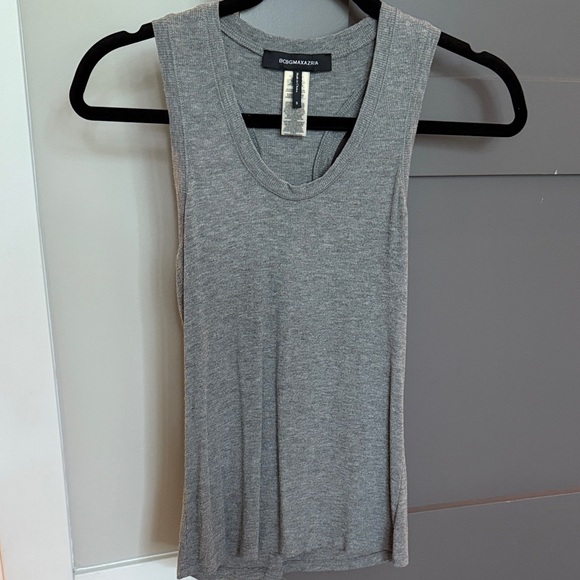BCBGMaxAzria Gray Ribbed Racerback Tank Top