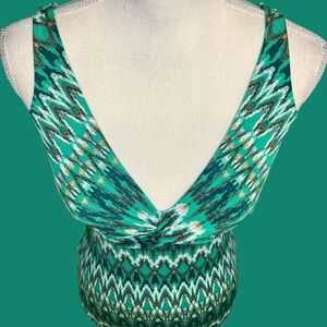 BCBGMaxAzria Green Chevron / Ikat Print Twist Front Tie-Around Sleeveless Top XS