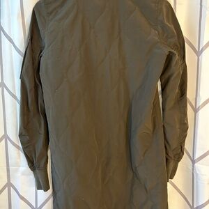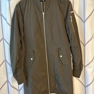 Gorgeous quilted long jacket. Olive green with pristine silver hardware.