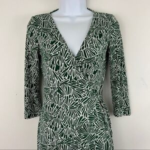 BCBGMaxAzria Green White Print Wrap Dress XS