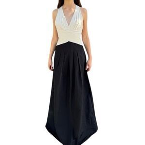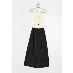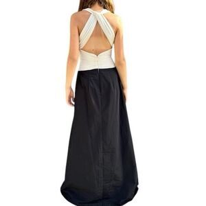 BCBGMaxAzria Halter Neck Gown in Pleated Cream Crepe Over Black Taffeta sz2 US