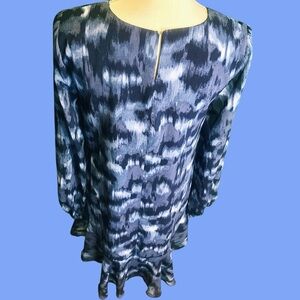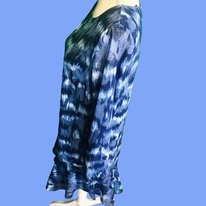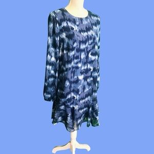 BCBGMaxAzria Ikat Print Chiffon Ruffled Hem Dress in “Pacific Blue Cloud” Size S