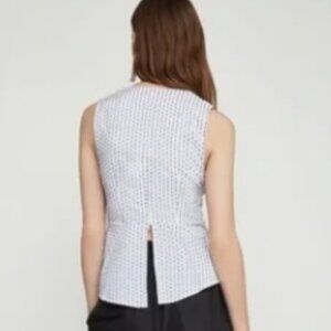 Designed with a stylish split peplum and wide waist tie, this sleeveless, tailored top from BCBGMAXAZRIA features a fresh ikat print on a soft, eco-friendly cotton blend. NWT