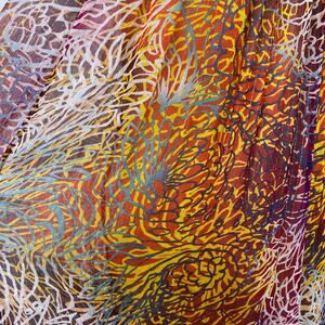 - Color/Print: Begonia multicolor abstract pattern with shimmer