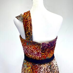 BCBGMaxAzria Inga One Shoulder Silk Maxi Gown Size 4 Begonia Metallic Pleated