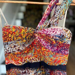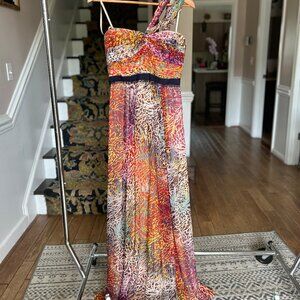 BCBGMaxAzria Inga One-Shoulder Halter Silk Maxi Dress in Begonia Multi Size 8