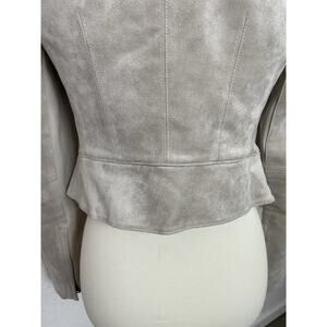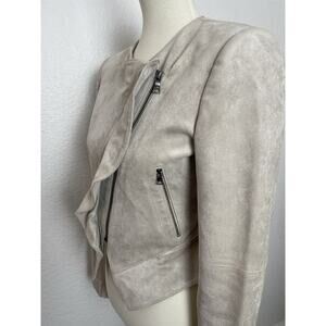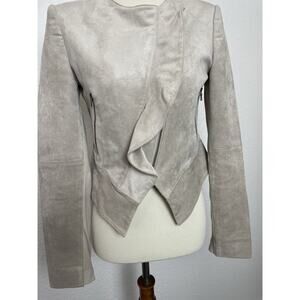 BCBGMaxAzria Jacket Kidd Faux Leather Moto Ruffled Single Breast Tan