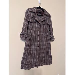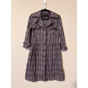 BCBGMaxAzria Jacket Y2K Dark Academia Plaid Long Sleeve Trench Brown Small