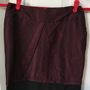 NWT BCBGMaxAzria merlot and black zig zag herringbone lined pencil skirt with center front pleat. Black hemline and back zip.