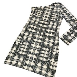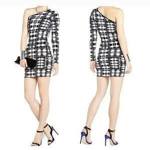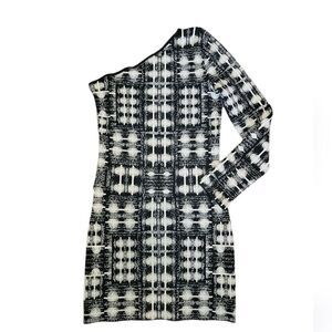 BCBGMaxAzria Jordan Black White Knit Fitted Bodycon One Shoulder Dress L