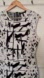 Chic mini dress with bold abstract design. Sleeveless and stylish. Ideal for modern elegance. Please note there are some stains on the dress (both armpits and some slight faded orange marks on front). Please see photos carefully. Price as marked for marks.