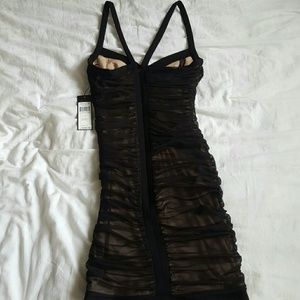 Brand new with tags black mesh with tan lining BCBGMaxAzria Keylene dress in size small.