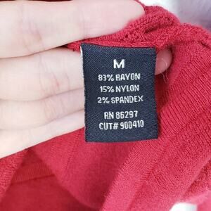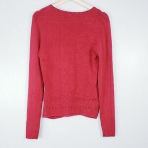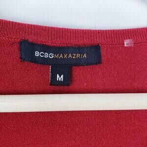 BCBGMaxAzria Women's Long Sleeve Red Knit Stitch Detail V Neck Super Soft Sweater